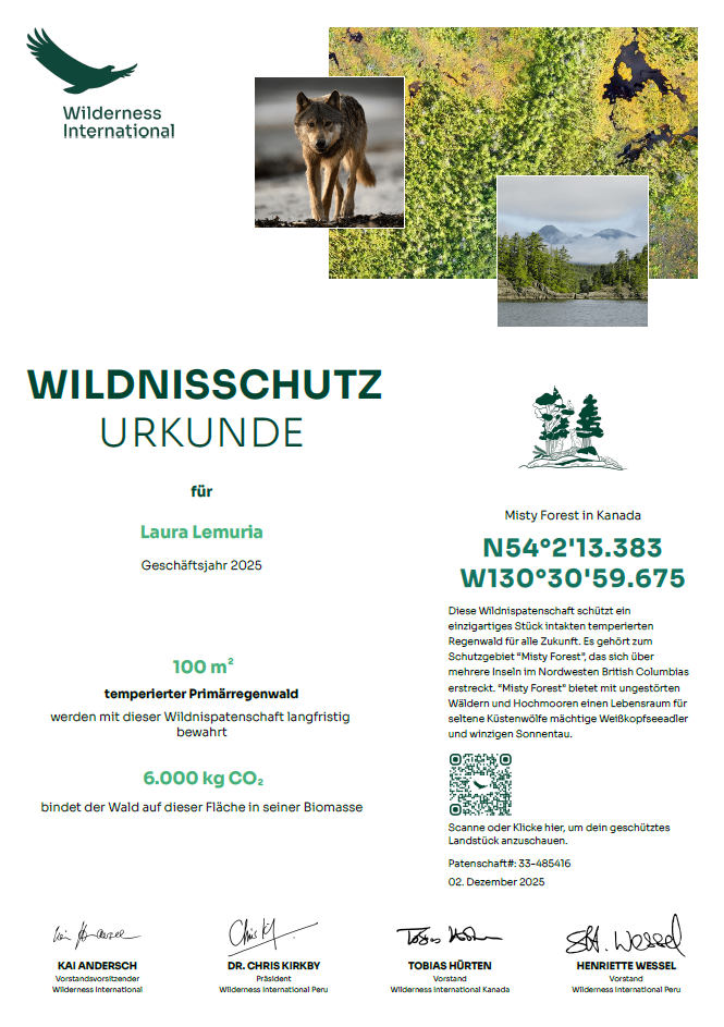 Mit Wilderness International habe ich eine Organisation gefunden, welcher ich zu 100% vertraue, dass die Spenden auch genau dort ankommen, wo sie gebraucht werden. Alle Zahlen sind auf der Website transparent einsehbar. Wilderness International hat dabei ein großes Ziel: besonders ökologisch wertvolle und akut bedrohte Wildnisgebiete für immer zu erhalten.